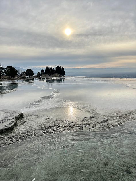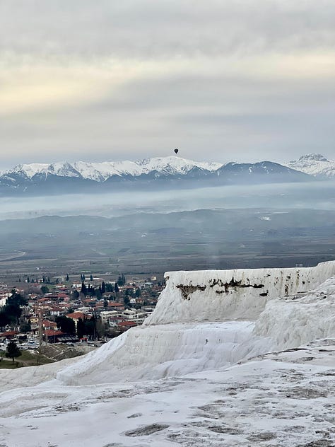 Pamukkale: Déjate maravillar por sus terrazas de aguas termales blancas como la nieve, un fenómeno natural sin igual.